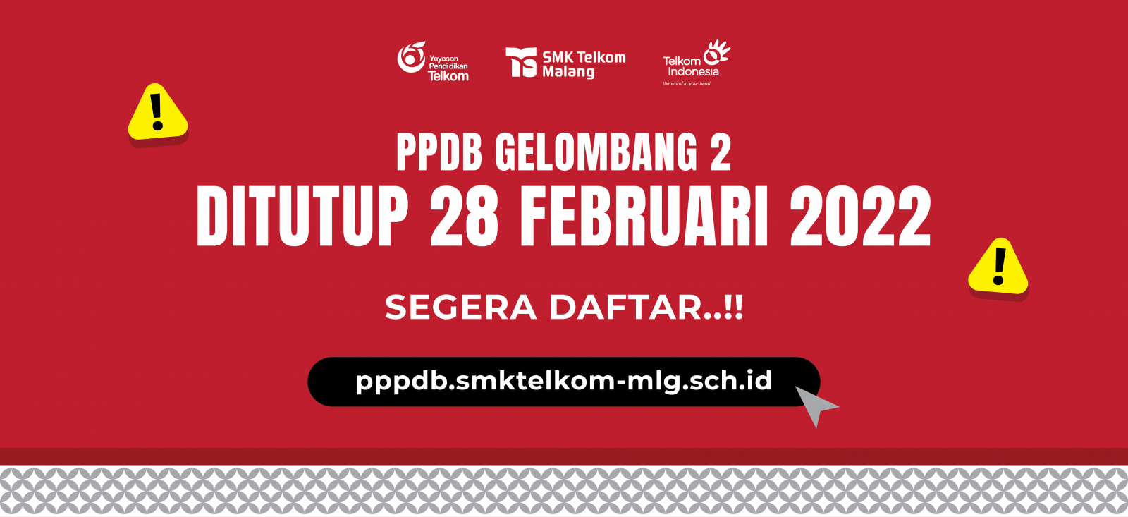 Kurang lebih satu bulan lagi PPDB Gelombang 2 SMK Telkom Malang akan resmi di tutup tepatnya pada tanggal 28 Februari 2022.???????