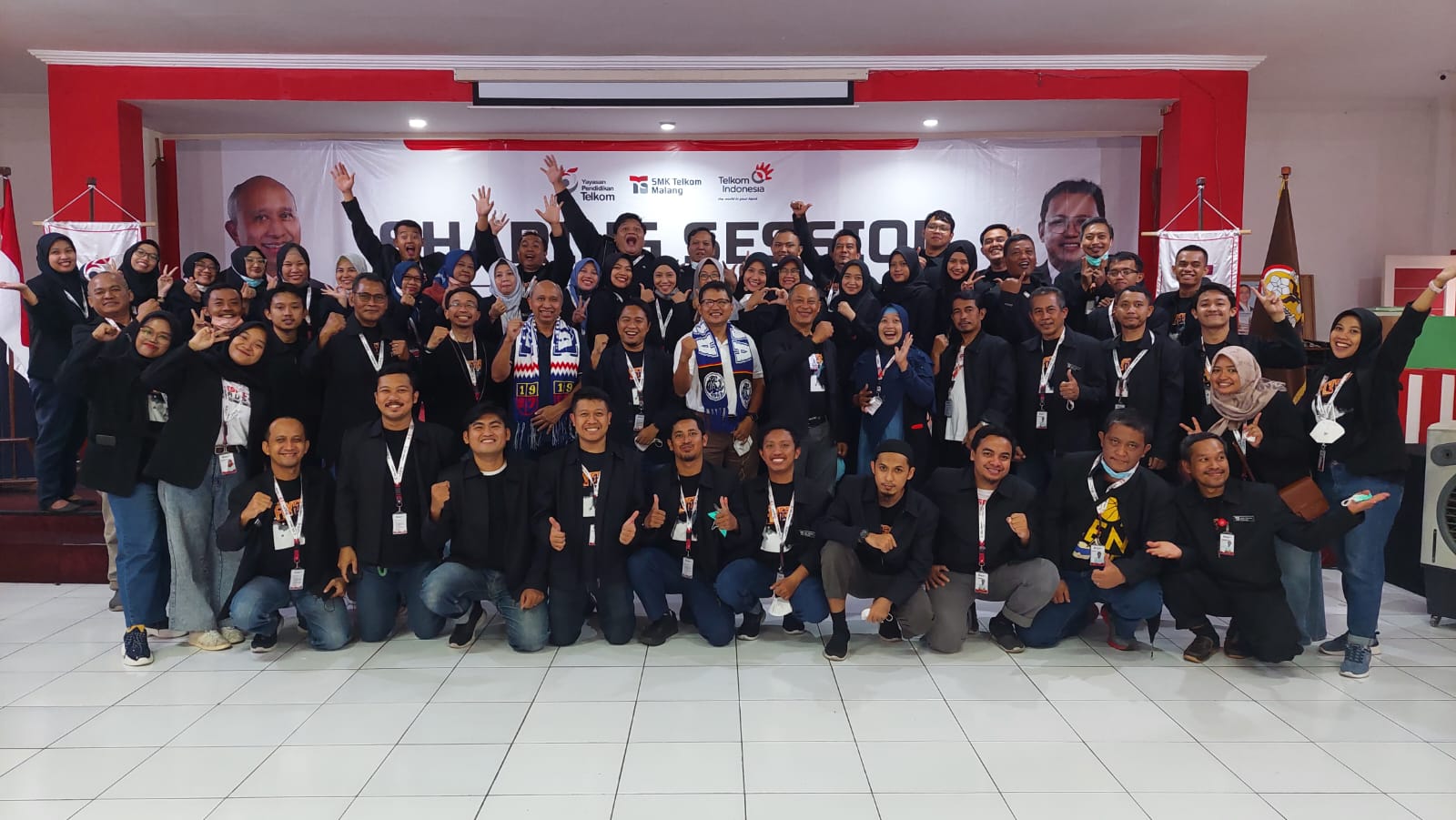Bapak Dodi Irawan dan Bapak Yuddy Aryadi berfoto bersama managemen dan bapak / ibu guru SMK Telkom Malang