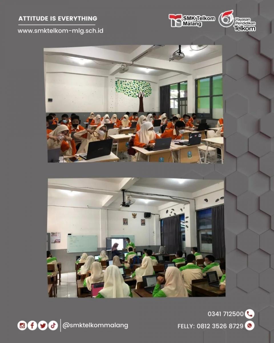 “telah resmi kami buka PTMT 100 % untuk sekolah kita terhitung mulai hari ini” ujar Waka Kurikulum SMK Telkom Malang, Ibu Ifa.