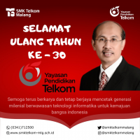 Selamat Ulang Tahun ke-30 Yayasan Pendidikan TelkomTerima kasih atas baktimu dalam bidang pendidikan.Dedikasi yang luar biasa untuk mencetak generasi penerus bangsa yang melek tehadap teknologi yang kini tengah membangun negeri dengan ide cemerlang untuk kemajuan bangsa.
