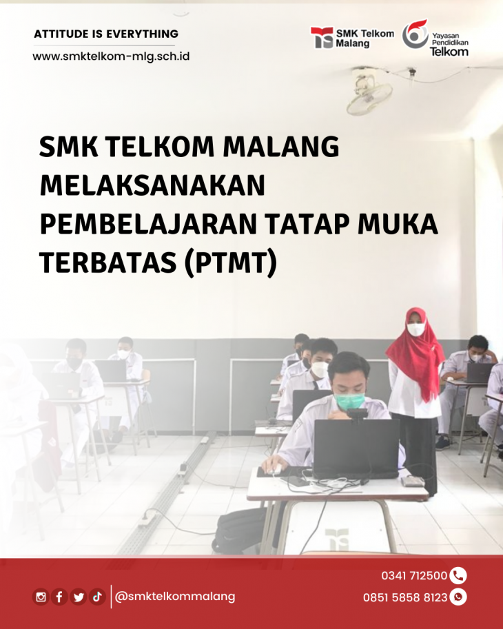 Pelaksanaan pembelajaran tatap muka terbatas di SMK Telkom Malang dimulai hari ini, Senin, 13 September 2021. Setiap siswa wajib menjaga protokol kesehatan dengan melampirkan bukti negatif swab antigen, menggunakan masker, cek suhu sebelum memasuki area sekolah, meminimalisir kontak fisik, dan mencuci tangan. PTMT disambut positif siswa dengan semangat belajar yang tinggi. Terus patuhi proto...