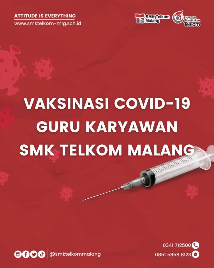 SMK Telkom Malang terus berupaya melakukan kegiatan pencegahan terhadap virus Covid-19 guna mempersiapkan kegiatan pembelajaran dan pelayanan semaksimal mungkin. Salah satu upaya yang dilakukan yaitu dengan mengikuti kegiatan vaksinasi Covid-19 untuk Guru Karyawan di sentra vaksinasi bersama BUMN. Seluruh guru dan karyawan telah mengikuti vaksinasi sebanyak dua kali yaitu pada tahap per...