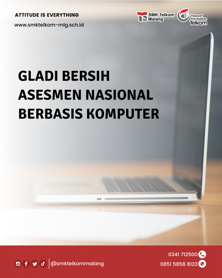 Gladi bersih Asesmen Nasional Berbasis Komputer di SMK Telkom Malang. Sebelum pelaksanaan gladi bersih siswa HARUS
